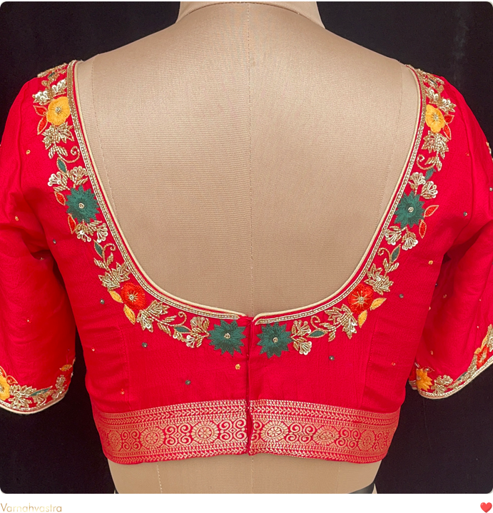 Embroided Muggam Work Blouse (Red)