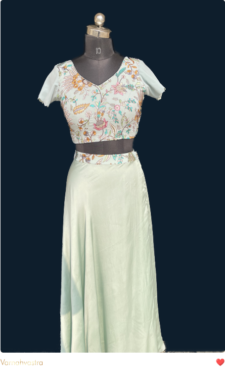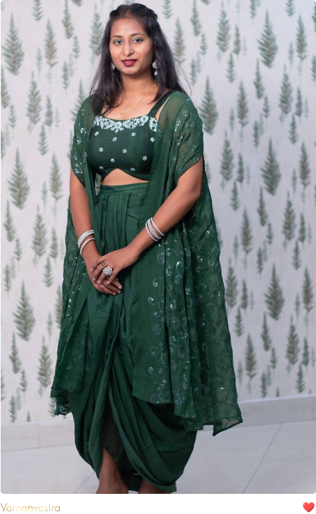 Organza Capa & Lehenga with Floral Blouse (White,Green)